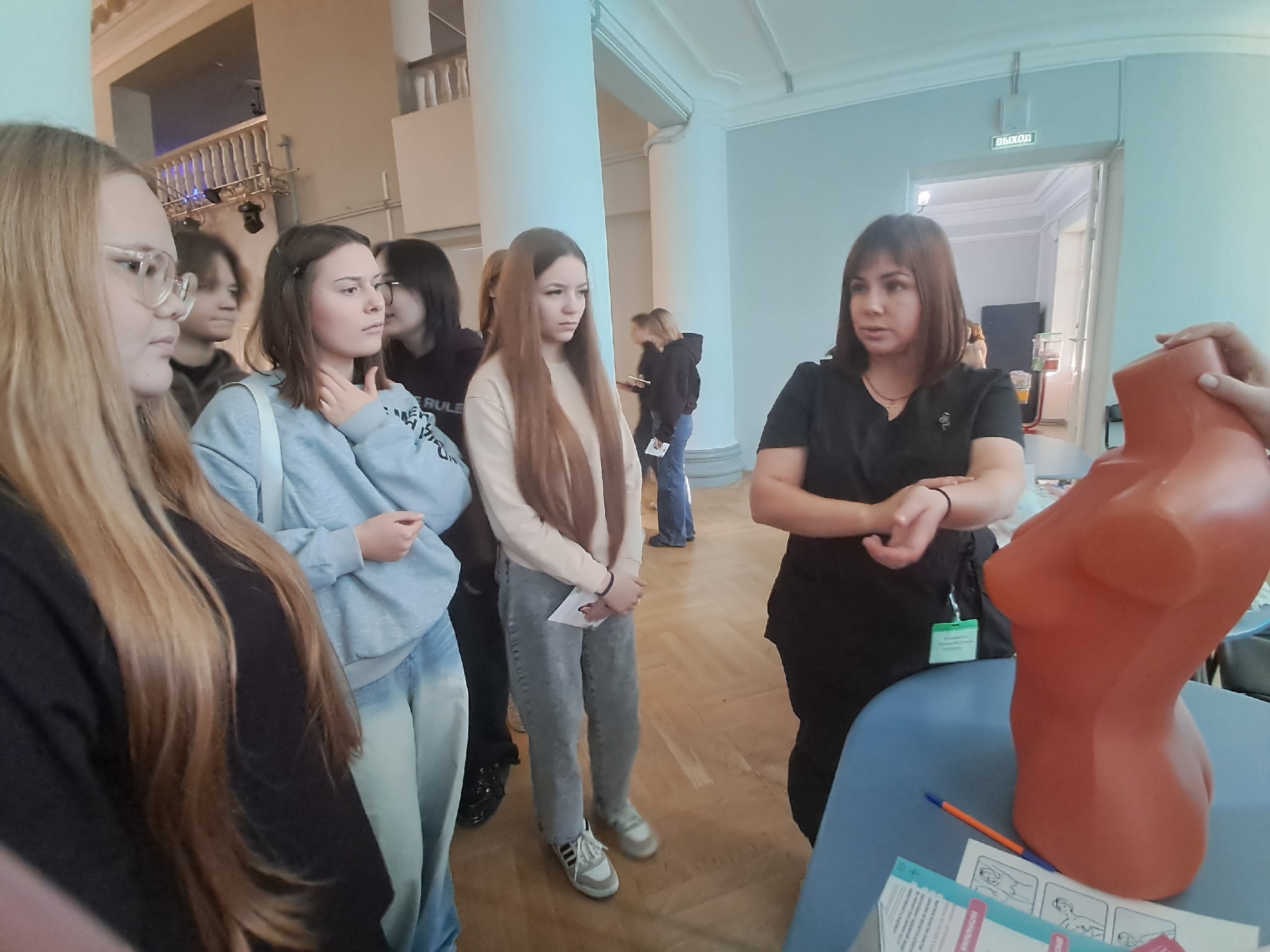 «День здоровья» для жителей Краснокамского округа прошел во Дворце культуры «Гознак». В котором приняли активное участие студенты третьего курса Краснокамского политехнического техникума, обучающиеся по специальности «Сестринское дело»- амбуссадоры профессионалитета. Мероприятие проходило под девизом «Здорово быть здоровым» и это правда! Приглашенные гости- представители различных лечебных учреждений нашего города и города Перми представили участникам свои презентации на темы: женского здоровья, семейных ценностей и рождение детей, как сохранить и укрепить психологическое здоровье в современном мире, основные аспекты о правилах здорового питания. Участники мероприятия имели возможность пройти обследование своего организма, экспресс- тест на ВИЧ, ознакомиться с правилами профилактики онкологических заболеваний молочных желез. Будущие выпускники по специальности «Сестринское дело» внимательно наблюдали за работой врачей и медицинских сестер при осуществлении приема пациента и обследовании его здоровья, задавали вопросы по профилактике ранних патологий у женщин, связанных с репродуктивным здоровьем, интересовались статистикой рождаемости в Пермском крае. Все участники