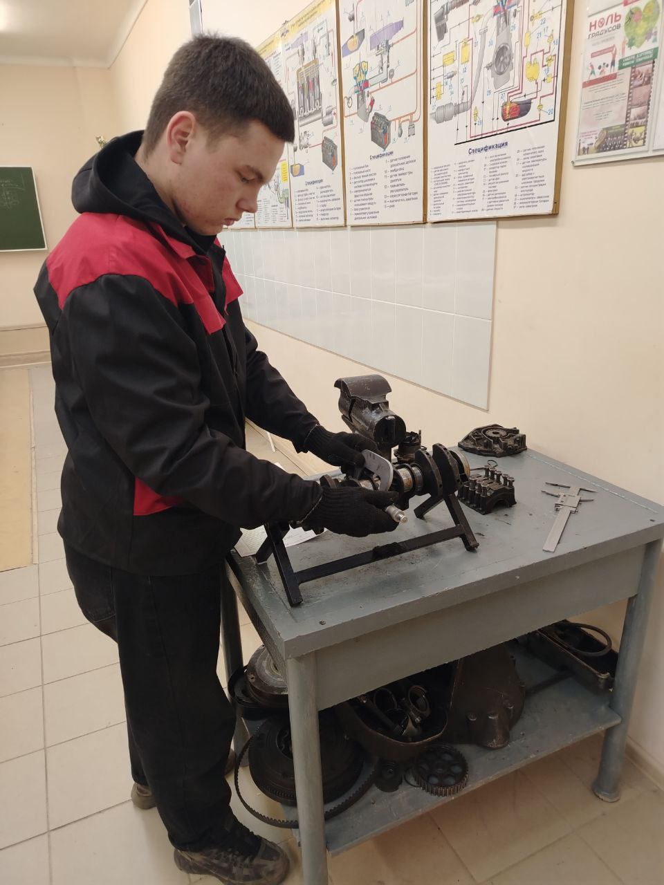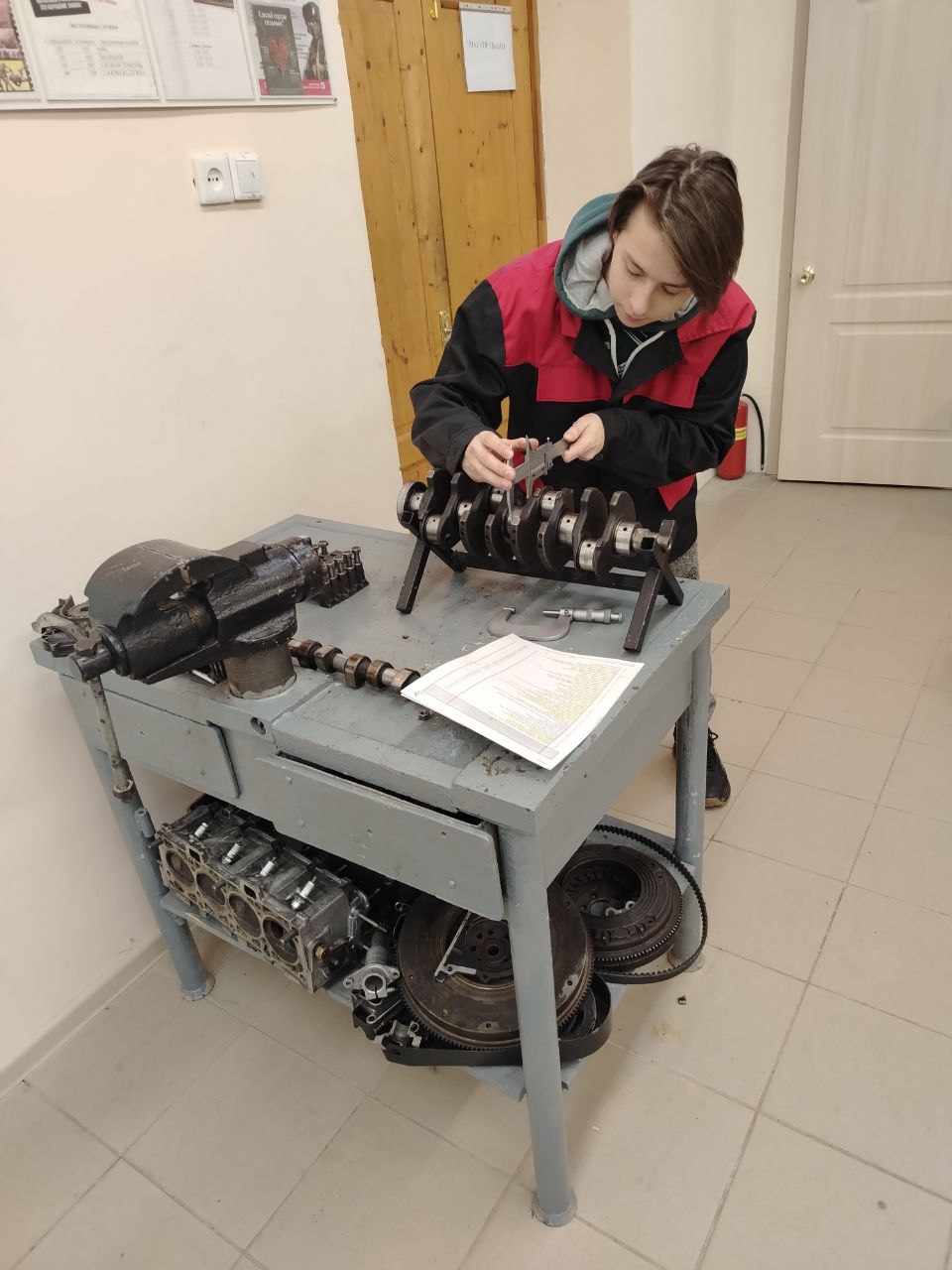 29 ноября 2025 года в ГБПОУ «Краснокамский политехнический техникум» завершился внутренний отборочный этап Чемпионата «Профессионалы» по компетенции «Ремонт и обслуживание легковых автомобилей». В течение недели проходили отборочные конкурсы в группах №№ АТ-23с и АТ-22в по специальности 23.02.07 Техническое обслуживание и ремонт двигателей, систем и агрегатов автомобилей. В каждой группе были определены три лидера, которые соревновались в заключительном состязании. Задание состояло из двух модулей. В рамках модуля 1 конкурсанты выполняли тестовые задания с целью определения уровня теоретической подготовки. Модуль 2 предусматривал демонстрацию практических навыков по техническому обслуживанию и ремонту автомобильных двигателей: согласно технологической карте конкурсантам было необходимо выполнить частичную разборку двигателя автомобиля, произвести осмотр поршня и цилиндра двигателя, измерение рабочих поверхностей коренных и шатунных шеек коленчатого вала, дефектовку деталей, произвести сборку двигателя. По результатам