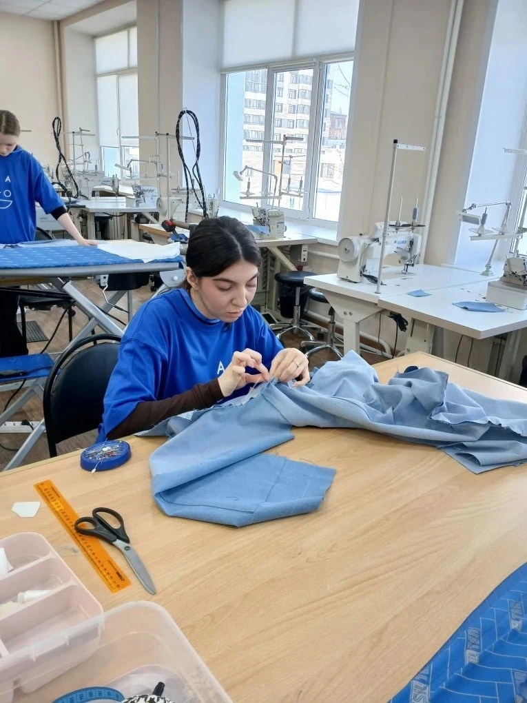 Сара Искендарова из группы №З-23р, с наставником Татьяной Вячеславовной Садиловой, представила парку из джинсовой ткани. Задание включало создание изделия прямого силуэта с двумя накладными карманами и застёжкой на молнию.