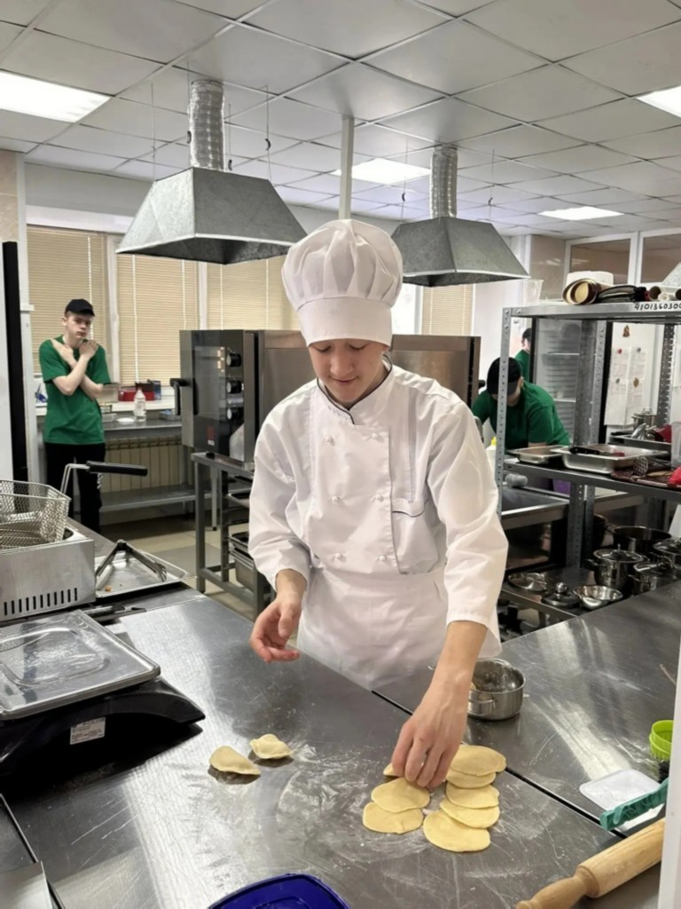 Николай Сенин из группы №ПВ-25р, под руководством Елены Ивановны Серебряковой, готовил традиционное уральское блюдо. Ему нужно было приготовить 20 посекунчиков с разными начинками (мясо, капуста, картофель), учитывая региональные продукты, а также сделать тесто и холодный соус.