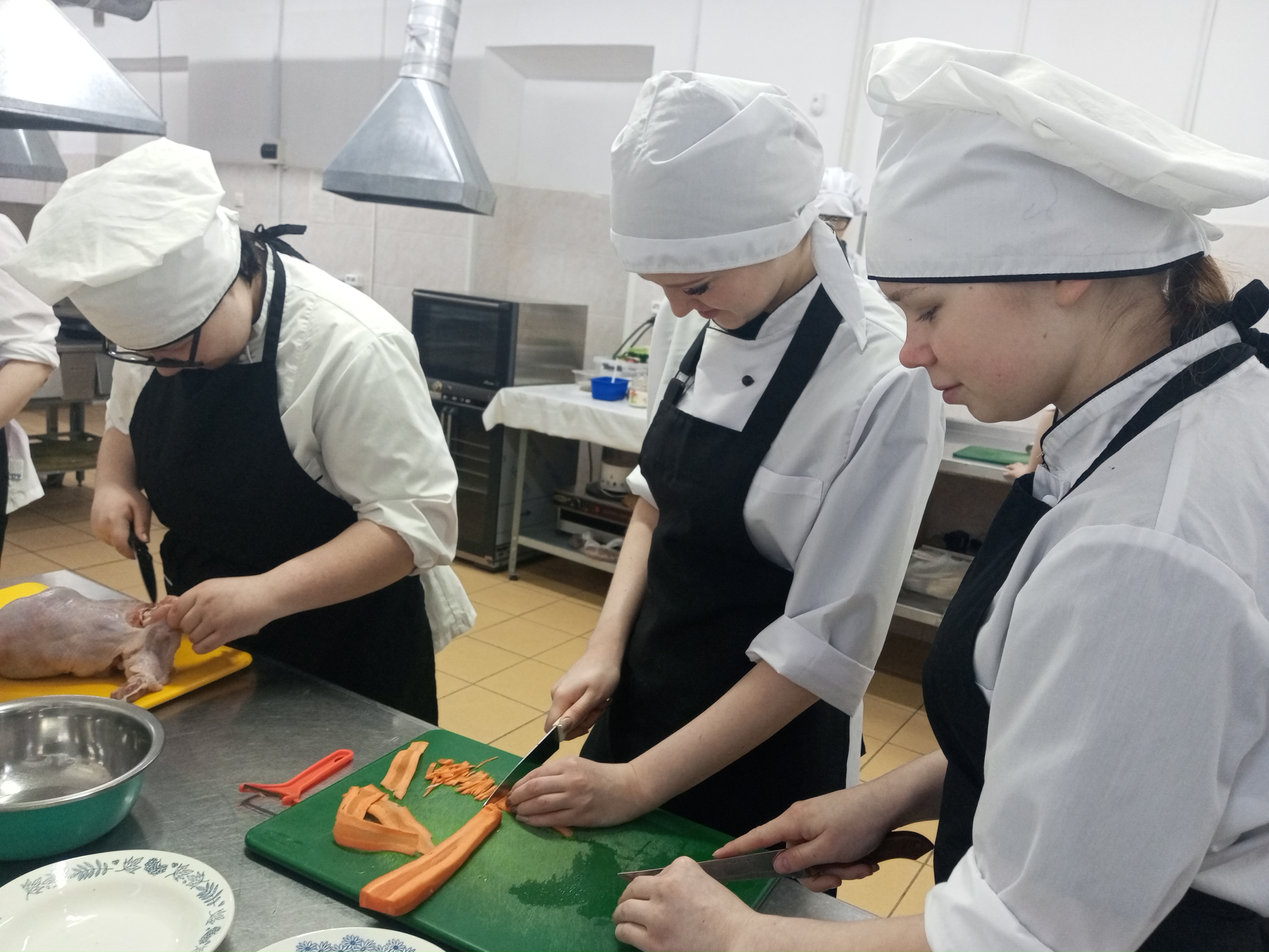 16 февраля 2026 года студенты первого курса, группы № ПК-25с, обучающихся по специальности 43.02.15 Поварское и кондитерское дело – начали учебную практику под руководством опытного преподавателя Серебряковой Елены Ивановны. В рамках практики они осваивают тему ПМ.07 Выполнение работ по одной или нескольким профессиям рабочих, должностям служащих. В течение двадцати четырех рабочих дней студенты будут осваивать практические навыки, необходимые для профессиональной деятельности в сфере кулинарии. Программа практики включает в себя освоение широкого спектра кулинарных техник и технологий, направленных на формирование компетенций в области приготовления горячих и холодных супов, гарниров из овощей, картофеля и грибов, соусов различных типов (белые, красные, сладкие), горячих блюд из различных видов мяса, рыбы и птицы, а также салатов и холодных закусок. Особое внимание уделяется освоению технологий приготовления хлебобулочных и кондитерских изделий, что позволит студентам развить навыки, необходимые для полноценной профессиональной деятельности в данной сфере. Студенты проявляют