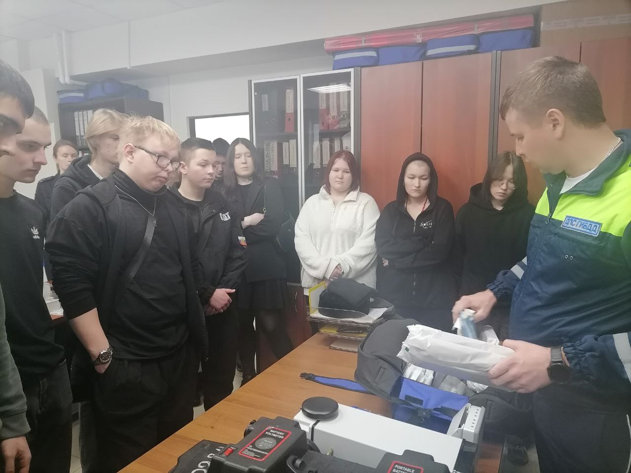 20 января студенты Краснокамского политехнического техникума приняли участие в экскурсии, организованной для них сотрудниками полиции межмуниципального отдела МВД России г. Краснокамска. Экскурсия проводилась в рамках ежегодной всероссийской акции МВД России "Студенческий десант-2026", посвященной Дню студента. Юноши и девушки группы МО-24р, обучающиеся по профессии Мастер отделочных строительных и декоративных работ, узнали о работе полицейских. Перед ребятами выступили эксперт-криминалист, кинолог, специалист по работе с личным составом, дознаватель и начальник дежурной части. Была озвучена информация о порядке поступления на службу в органы внутренних дел, об основных требованиях, предъявляемых к кандидатам и социальных гарантиях, а также об условиях поступления в ВУЗы МВД России. Особый интерес вызвал рассказ специалиста экспертно-криминалистической службы о том, как раскрываются различные преступления, определяется личность человека по отпечаткам пальцев рук и ладоней, как осуществляется дактилоскопия. Студенты посетили Госавтоинспекцию, где познакомились со структурой и особенностями работы госавтоинспекторов, получили ответы на все вопросы, связанные с безопасностью дорожного движения. Экскурсия в полицию
