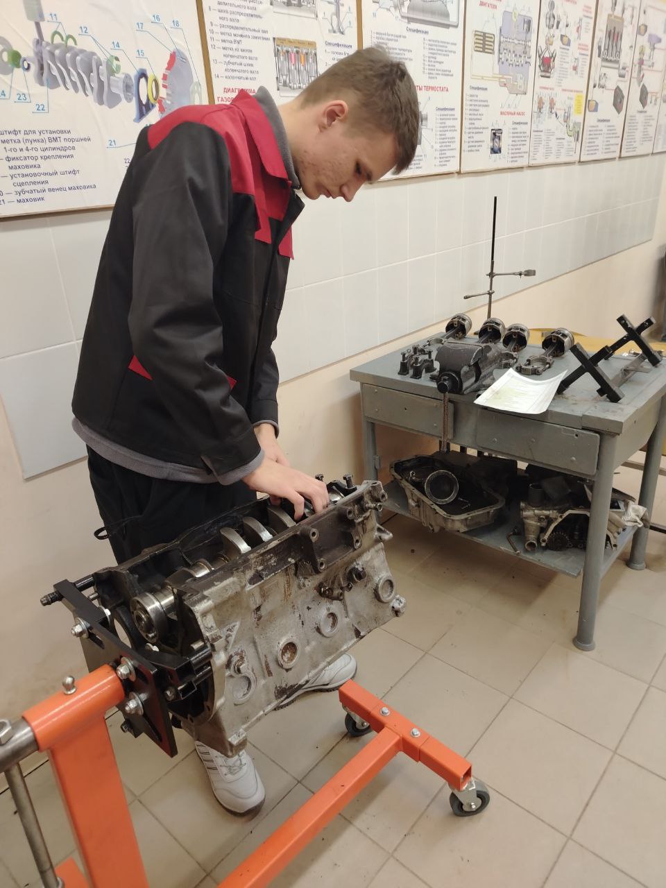 29 ноября 2025 года в ГБПОУ «Краснокамский политехнический техникум» завершился внутренний отборочный этап Чемпионата «Профессионалы» по компетенции «Ремонт и обслуживание легковых автомобилей». В течение недели проходили отборочные конкурсы в группах №№ АТ-23с и АТ-22в по специальности 23.02.07 Техническое обслуживание и ремонт двигателей, систем и агрегатов автомобилей. В каждой группе были определены три лидера, которые соревновались в заключительном состязании. Задание состояло из двух модулей. В рамках модуля 1 конкурсанты выполняли тестовые задания с целью определения уровня теоретической подготовки. Модуль 2 предусматривал демонстрацию практических навыков по техническому обслуживанию и ремонту автомобильных двигателей: согласно технологической карте конкурсантам было необходимо выполнить частичную разборку двигателя автомобиля, произвести осмотр поршня и цилиндра двигателя, измерение рабочих поверхностей коренных и шатунных шеек коленчатого вала, дефектовку деталей, произвести сборку двигателя. По результатам