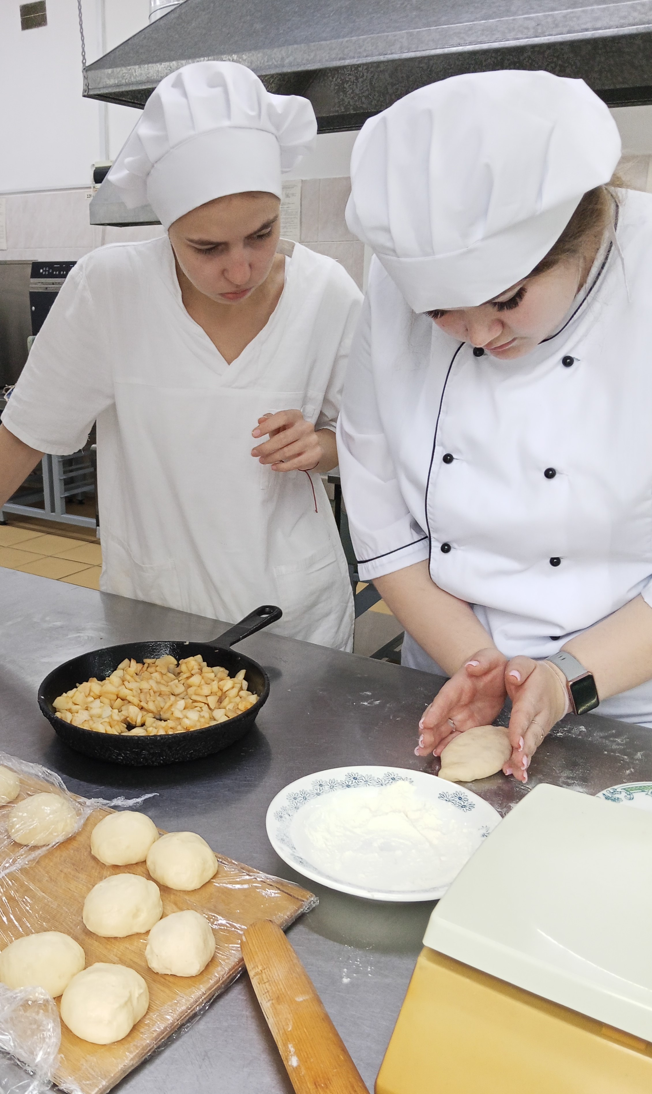 14 октября 2025 года в Краснокамском политехническом техникуме состоялся конкурс профессионального мастерства в лаборатории «Учебная кухня ресторана». Участники соревновались в приготовлении изделий из сдобного дрожжевого теста. В конкурсе приняли участие обучающиеся 2 курса, группы № ПВ-24р, по профессии 12901 Кондитер. Мероприятие организовала и провела преподаватель профессиональной подготовки Валентина Александровна Каменских. Одной из целей