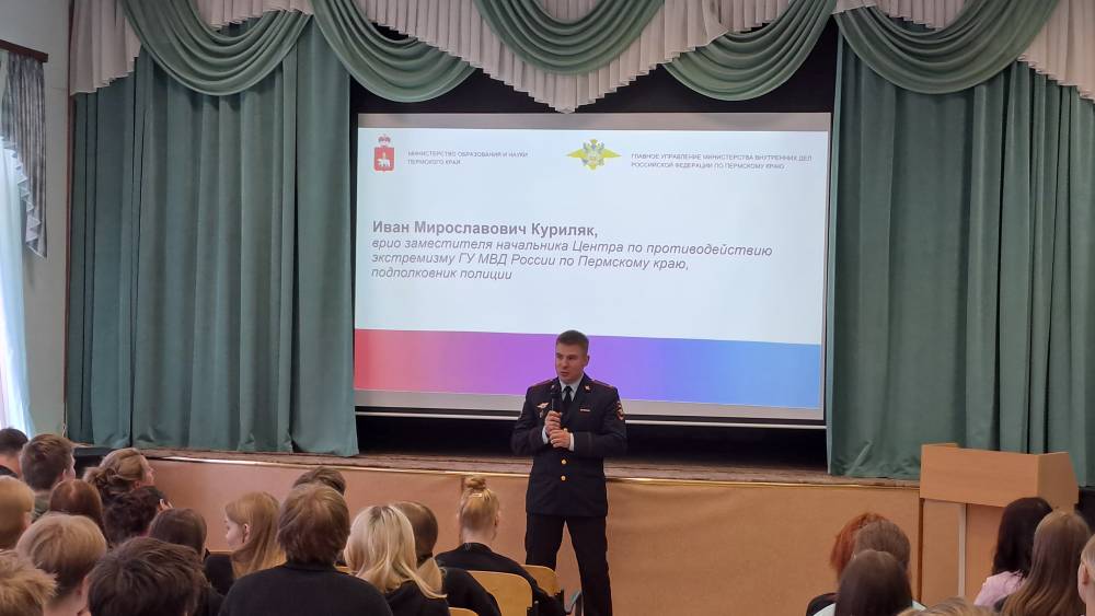 31 марта 2026 года ГБПОУ «Краснокамский политехнический техникум» посетили гости – сотрудники Главного управления Министерства внутренних дел России по Пермскому краю, Министерства образования и науки Пермского края и студенты Пермского педагогического университета. Они провели встречи с обучающимися и педагогическими работниками, посвященные личной и общественной безопасности. Перед обучащимися, студентами 1 и 2 курсов, выступили представители Главного управления МВД России по Пермскому краю: старший инспектор по особым поручениям Управления организации деятельности участковых уполномоченных полиции и подразделений по делам несовершеннолетних, подполковник полиции Екатерина Александровна Токмакова, Врио заместителя начальника Центра по противодействию экстремизму, подполковник полиции Иван Мирославович Куриляк и старший оперуполномоченный Управления по контролю за оборотом наркотиков, подполковник полиции Эльнур Дамирович Муксинов. Их выступления были посвящены преступлениям, связанным с финансовыми махинациями, террористическими актами, которые совершают несовершеннолетние, ответственности за эти преступления. Подвела итог встречи со студентами Лейла Асхатовна Гиляева, консультант отдела профилактики детского и семейного неблагополучия Министерства образования и науки Пермского края. После этого три группы студентов отправились на интерактив «Осторожно, дропперство!», который подготовили и провели студенты Пермского государственного гуманитарно-педагогического университета. Ребята прошли по трем станциям: «Финансовая безопасность», на которой выполняли задания викторины; «Правовая безопасность», где решали ситуационные задачи по теме интерактива; «Психологическая безопасность» - тренинг под девизом «Включи мозги – скажи «нет»!». Завершением встречи