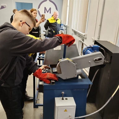 11 февраля 2026 года в рамках профориентационной программы регионального этапа Чемпионата по профессиональному мастерству «Профессионалы» в Пермском крае состоялась профориентационная экскурсия по техникуму с проведением мастер-класса «Подготовка металла к сварке» для учеников «Школы-гимназии № 1» г. Краснокамск. Провел его преподаватель профессиональной подготовки Круподеров Владимир Леонидович. Участники мастер-класса познакомились с оборудованием мастерской «Промышленная механика и монтаж»: отрезной станок, наждачный станок, углошлифовальная машинка, на которых осуществляются операции по подготовке металлических заготовок к сварке. На практическом этапе школьники под руководством студентов 4 курса выполняли работы по резке заготовок и снятию фасок под сварку. Ребята проявили интерес к дальнейшему обучению в техникуму по направлению «машиностроение», задавали много вопросов. В мастер-классе