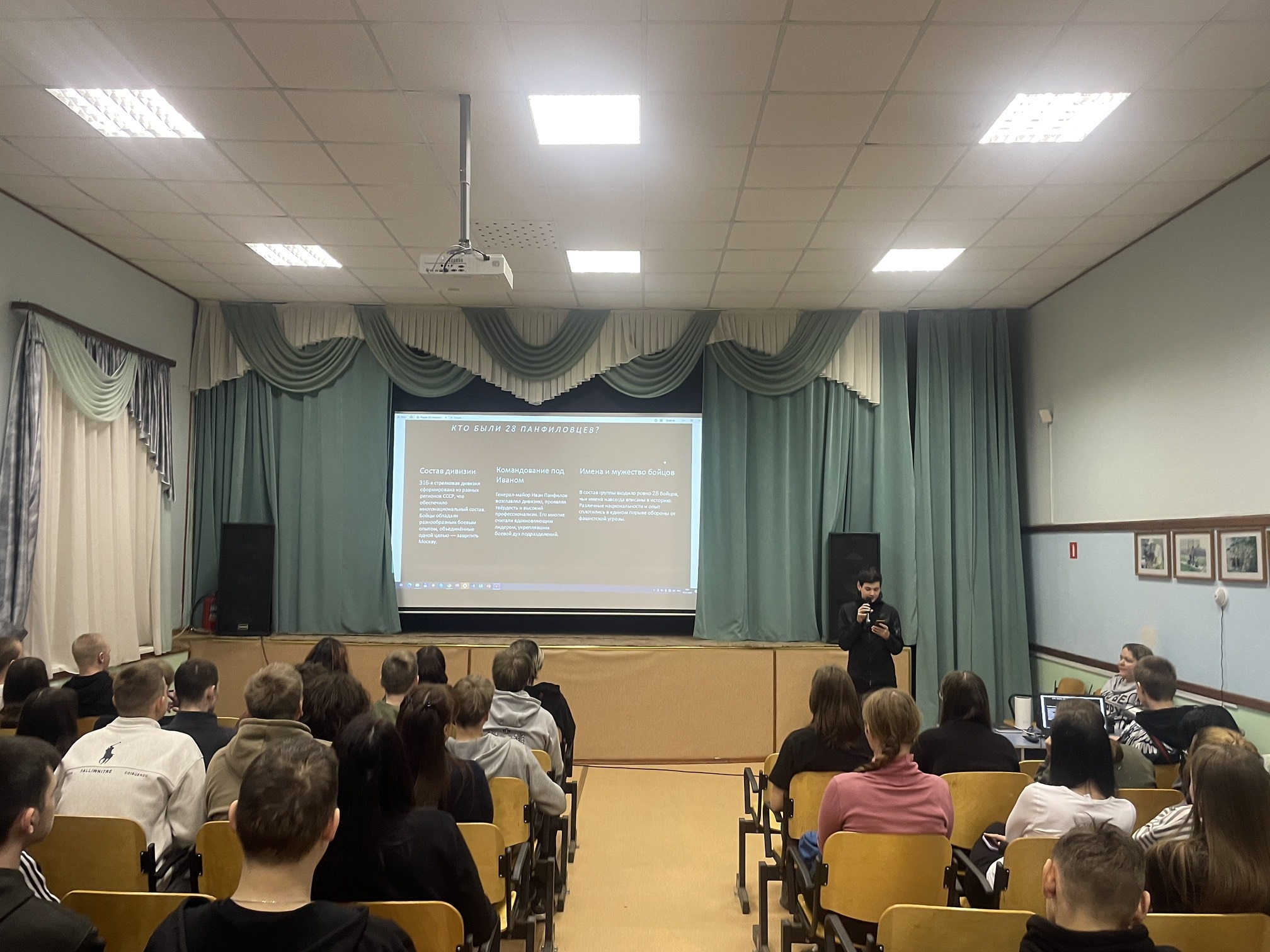 17 ноября для студентов 1-3 курсов техникума был проведен Час Истории, посвящённый подвигу 28 стрелков Панфиловской дивизии во время Великой Отечественной войны. Обучающиеся, подготовившие мероприятие, рассказали о том, что 16 ноября 1941 года 28 бойцов 4-й роты 2-го батальона 1075-го стрелкового полка Панфиловской дивизии во главе с политруком Василием Клочковым удерживали оборонительную позицию в окрестностях разъезда Дубосеково в семи километрах от Волоколамска, тем самым защищая подступы к Москве. Рассказ сопровождался примерами беспрецедентного мужества и стойкости советских бойцов. Подвиг панфиловцев стал символом несгибаемой воли советского народа, готовности умереть, но не отступить. В конце мероприятия